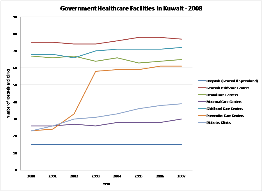 Moreover, The Kuwaiti Government has been increasing the number of clinics consistently to provide the basic healthcare services to the local residential areas; Graph 6.